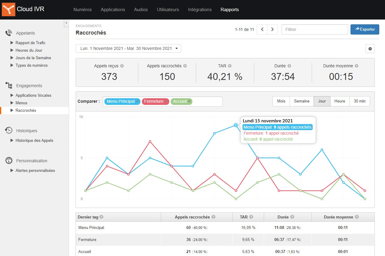 Afin d’améliorer continuellement l’efficacité de votre serveur vocal interactif (SVI), notre solution Cloud IVR se réinvente et enrichit ses rapports statistiques. Aujourd’hui, Cloud IVR vous présente son nouveau rapport : celui des raccrochés. Découvrez de quoi il s’agit !