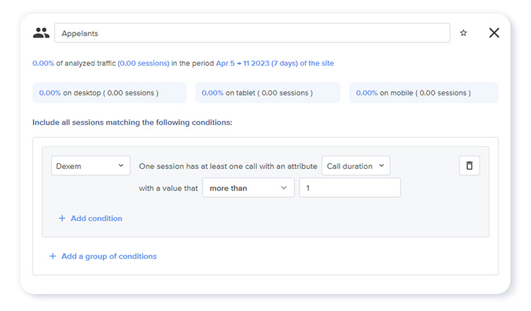 Si les conversions par téléphone sont importantes pour vous et votre entreprise et que vous souhaitez augmenter leur volume, vous pouvez également créer un segment pour isoler les internautes n’ayant pas passé d’appel.