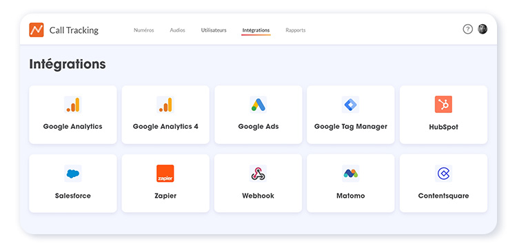 Cette intégration se configure en quelques clics depuis votre compte Dexem Call Tracking, il suffit de vous y connecter, de cliquer sur la card Contentsquare dans l’onglet Intégrations et de vous laisser guider !
