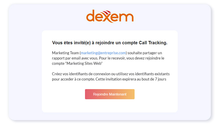 Lorsque vous renseignez les destinataires du rapport par email, vous pouvez sélectionner les utilisateurs de votre compte. Et lorsque vous saisissez une adresse email qui n’est pas celle de l’un des utilisateurs, le rapport ne lui est pas directement envoyé. Il recevra dans un premier temps une invitation à rejoindre le compte. Et c’est seulement une fois l’invitation acceptée, qu’il pourra recevoir le rapport par email.
