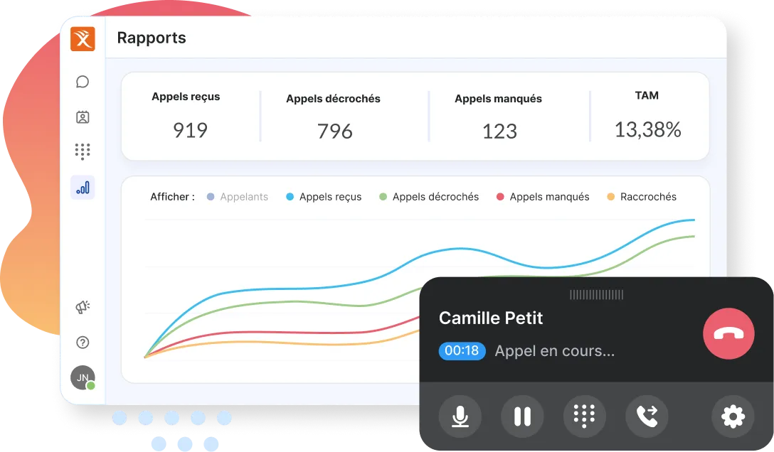 - Rapports statistiques : permet de visualiser des données sur les appels passés et reçus, ainsi que sur leur traitement par vos équipes